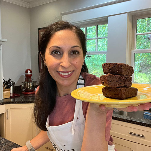 Pure cane sugar, gluten free flour (sweet white rice flour, whole grain brown rice flour, potato starch, whole grain sorghum flour, tapioca flour, xanthan gum), tofu(water, soybeans, less than 2% of calcium sulfate, magnesium chloride), non-dairy butter [natural oil blend (palm fruit, canola oil, olive oil), water, contains less than 2% of salt, sunflower lecithin, pea protein, natural flavor, lactic acid (non-dairy), and naturally +extracted annatto(color)], pure organic maple syrup, unsweetened chocolate, chocolate chips(cane sugar, unsweetened chocolate, cocoa butter), Dutch-processed cocoa,pure vanilla extract [vanilla bean extractives in water, alcohol (35%)], baking powder, iodized salt [salt, calcium silicate (an anti-caking agent),dextrose, potassium iodide].