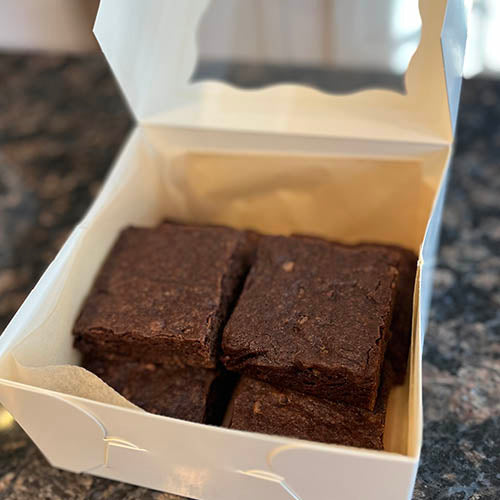 While our brownies do not contain any wheat, and are always made first on baking days, we cannot guarantee that cross-contamination will not occur. Everything we make at Melski’s is made from our home kitchen, and just about all of our other offerings contain wheat. If you have a severe allergy to wheat, or any other major allergens, we strongly (and sadly need to) advise that you do not order from us.